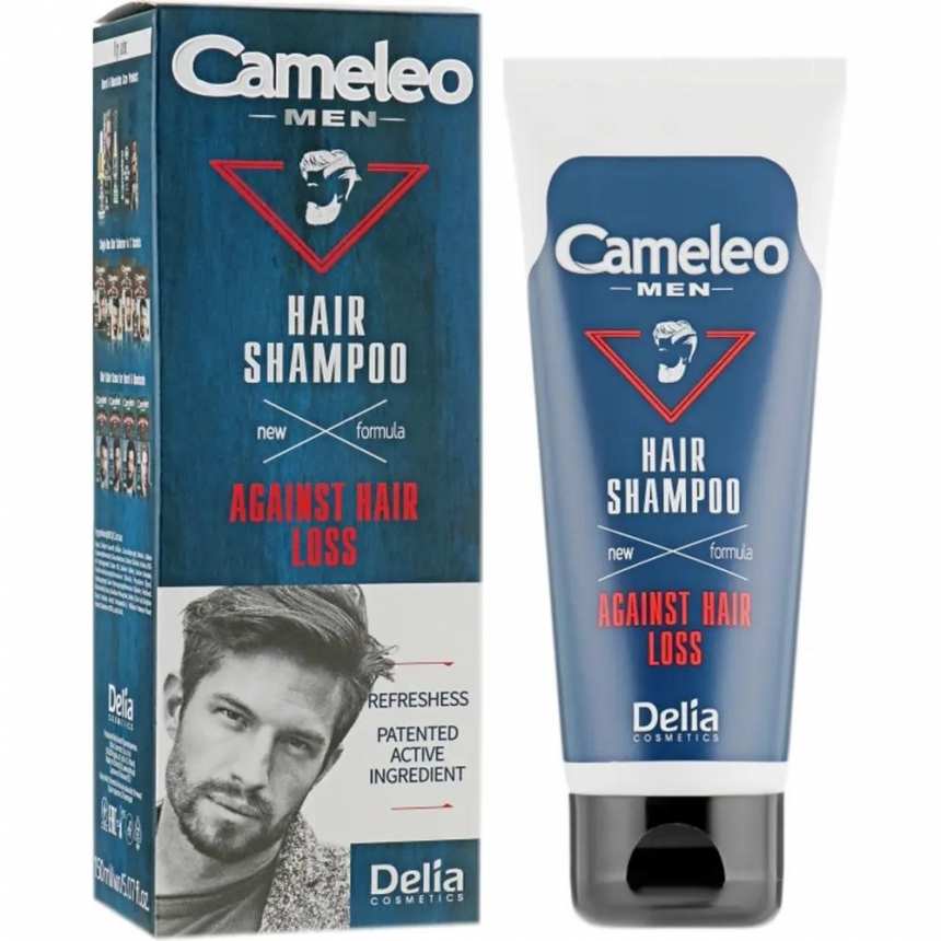 Шампунь Delia Cameleo Men Against Hair Loss Shampoo дозволяє ефективно очищати волосся і шкіру голови. При цьому спеціальна формула зміцнює волосся, робить його більш стійким до негативного зовнішнього впливу. Завдяки цьому воно менше випадає, ламається.